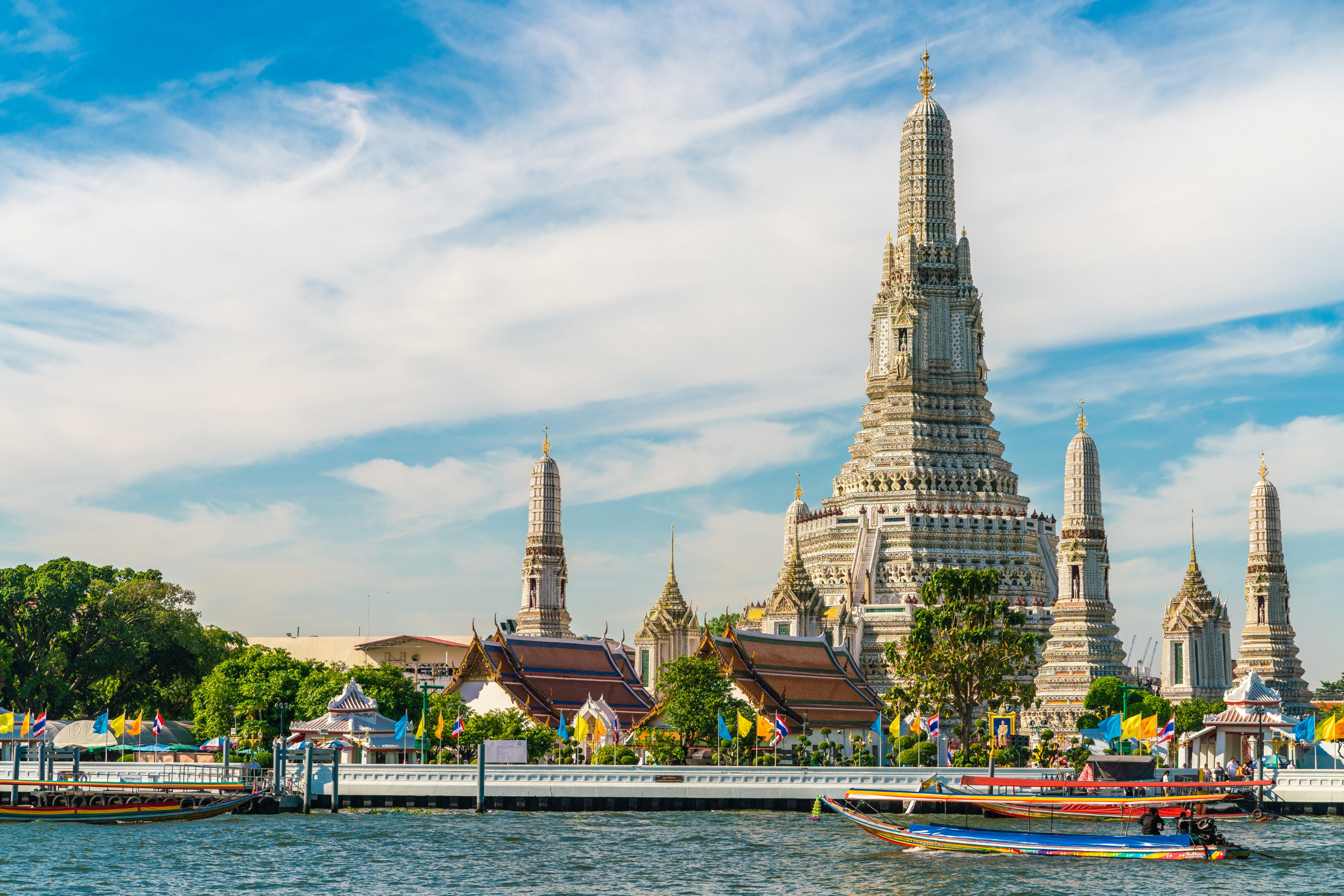 Travel by boat on the picturesque Chao Phraya River and the canals of Thonburi on the east side of the river reveals a scene that offers a stark contrast to the frenzied activity of the modern metropolis of Bangkok. Make the first stop at Bangkok’s most captivating cultural gems with a visit to Wat Paknam Phasi Charoen, a revered temple tucked along the peaceful Phasi Charoen Canal. On the return journey, we stop at the Temple of Dawn (Wat Arun), whose towering spire has become an iconic symbol of Bangkok.