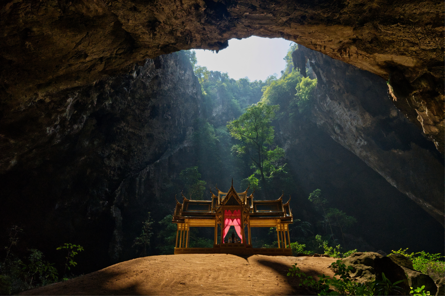 Hidden within Phraya Nakhon Cave lies one of Thailand’s most symbolic spaces of quiet reflection and natural healing. Accessible via a short hike and boat journey, the cave opens dramatically to the sky, allowing sunlight to illuminate the iconic Kuha Karuhas Pavilion — a royal structure built during the reign of King Chulalongkorn. The experience of entering the cavern, moving from dense jungle into a vast, light-filled chamber, creates a natural moment of pause and introspection.